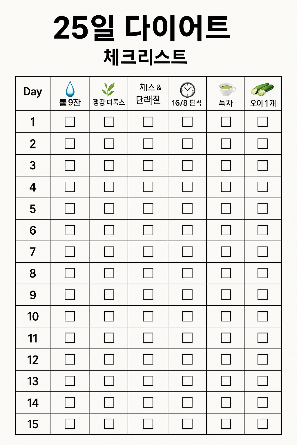 첨부파일에는 25일 체크 리스트가 있습니다. 필요하시면 다운 받아서 사용해 보세요.